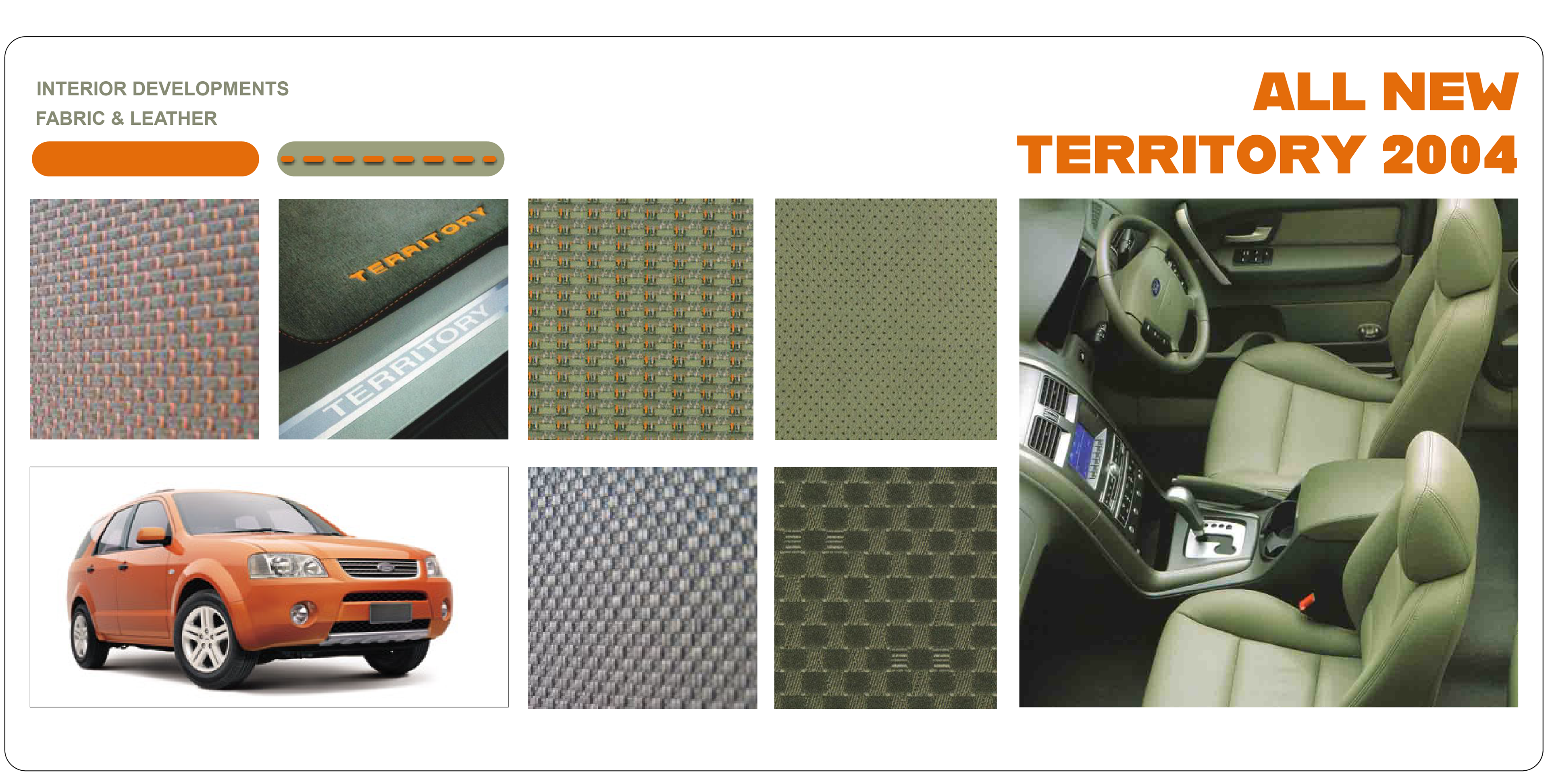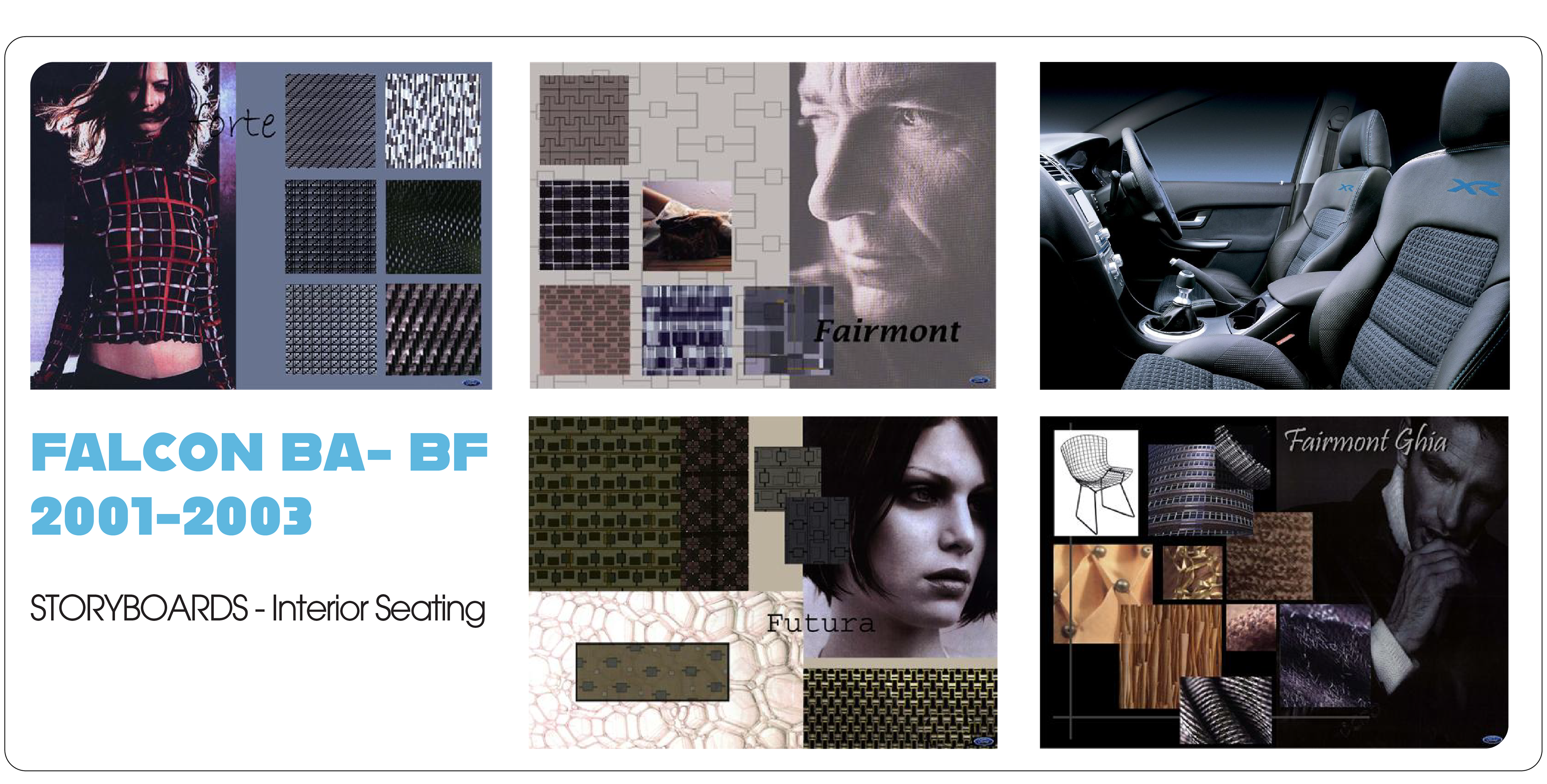 From the BA–BF Falcon to Territory and FPV performance models, I helped craft the materials and colours that shaped how drivers experienced these vehicles. Seating fabrics, leather grains, stitching details, interior accents and exterior palettes were all part of my hands-on contribution — extending into Asia-Pacific programs where local tastes and market expectations informed every design call.